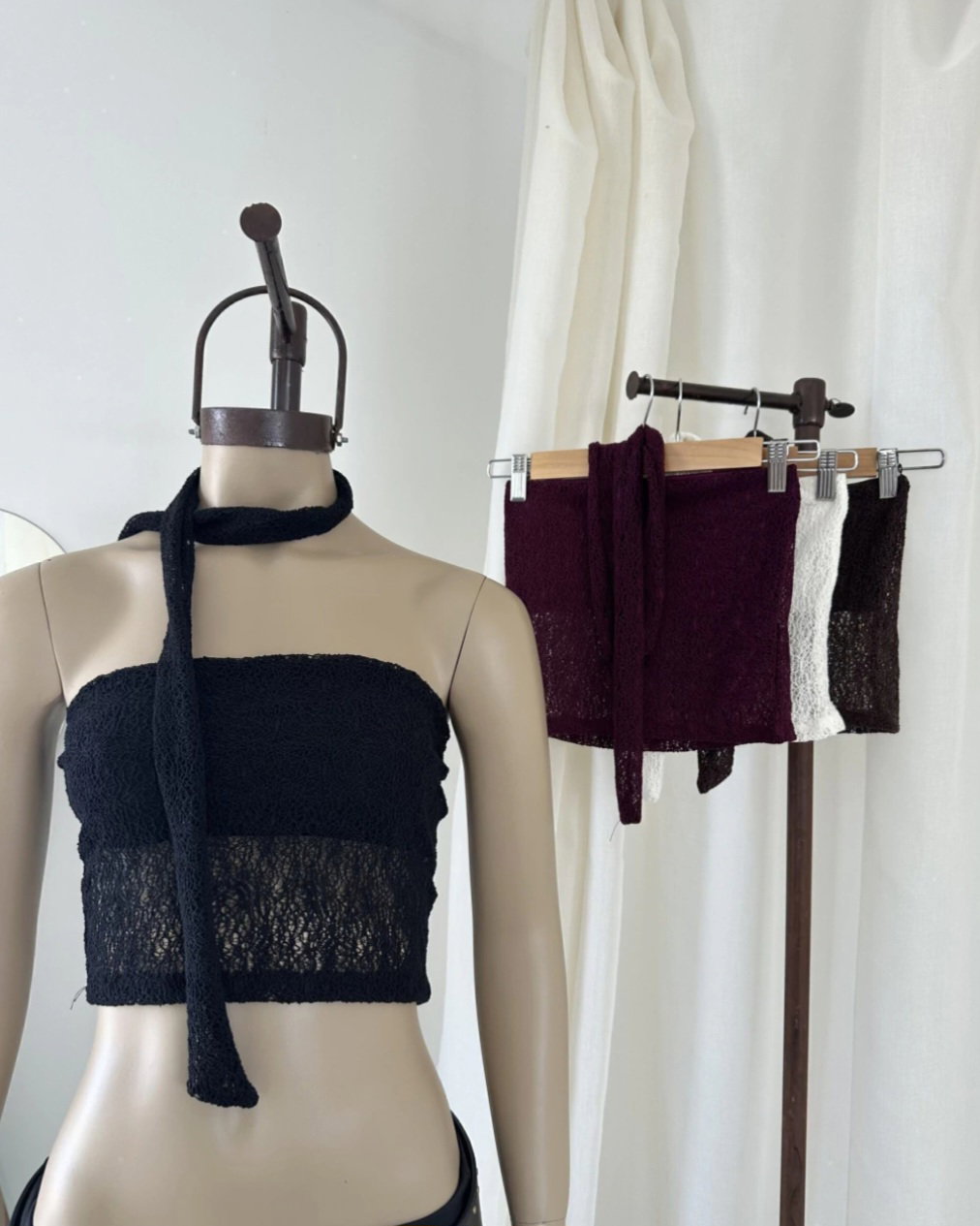 Strapless de Encaje Lazo Corbata